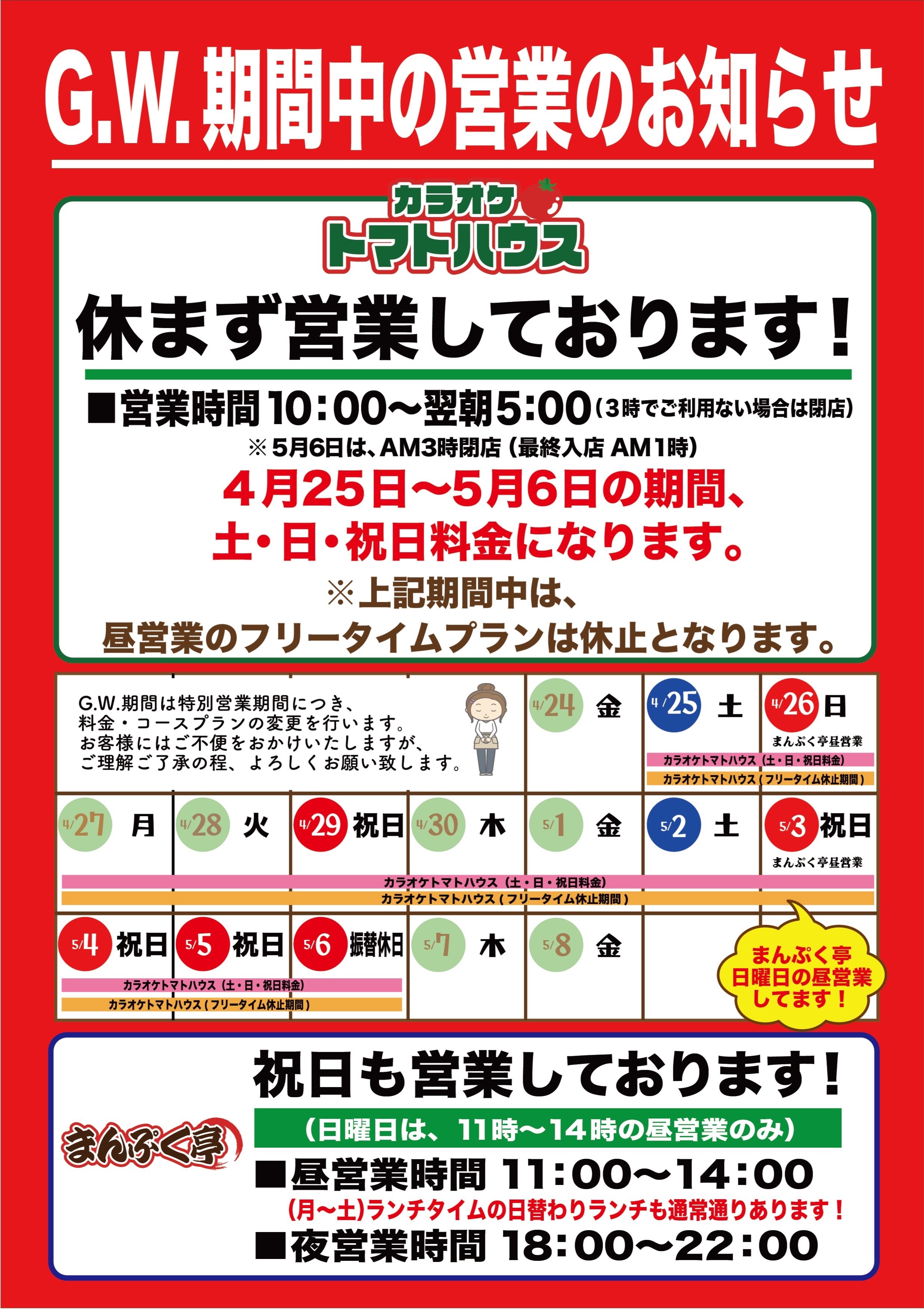2026.04.25 イベント・フェア G.W.期間中の営業について 4月25日(土)~5月6日(祝日)は特別営業期間になります。毎日(平日も)閉店時間を延長しております!皆様のお越しをお待ちしております! PDFを開く 一覧へもどる
